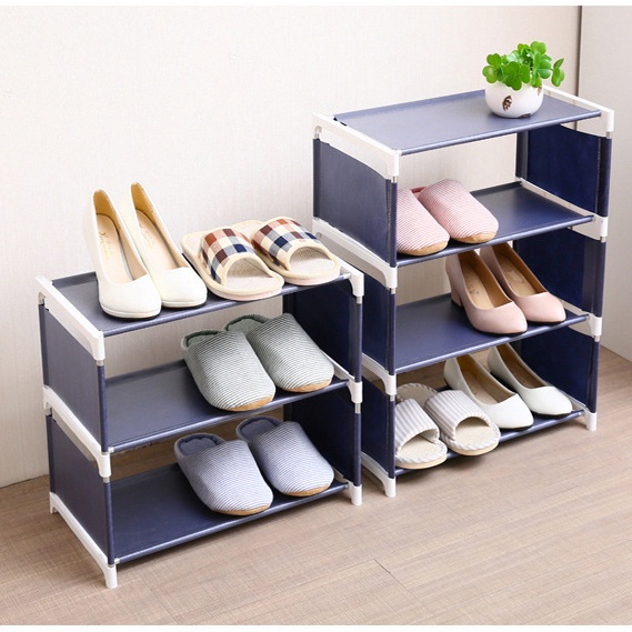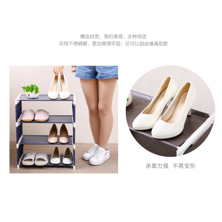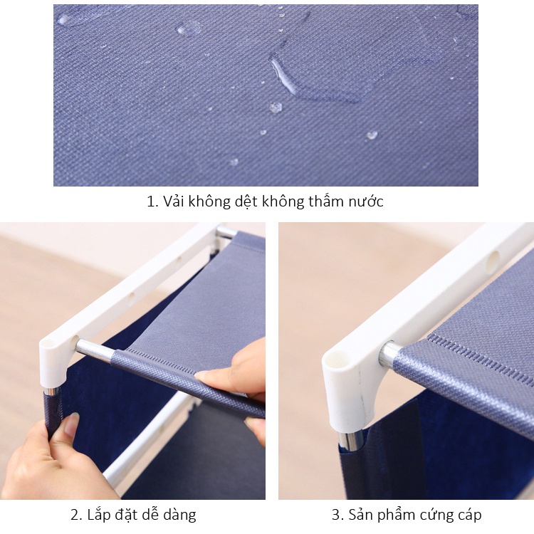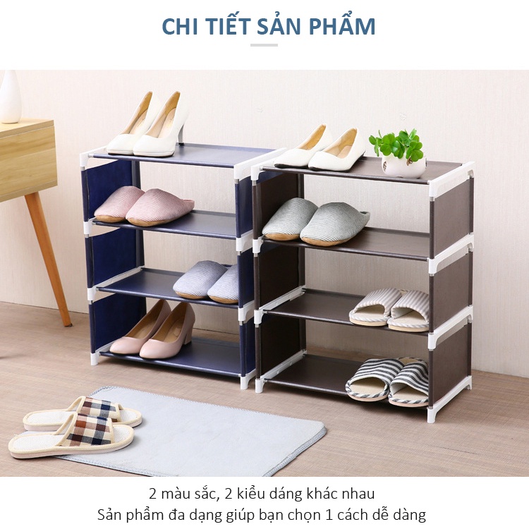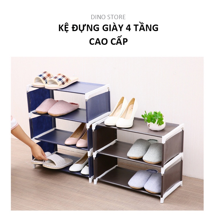 Kệ để giày dép 4 tầng lắp táp tiện lợi thanh inox vải không dệt