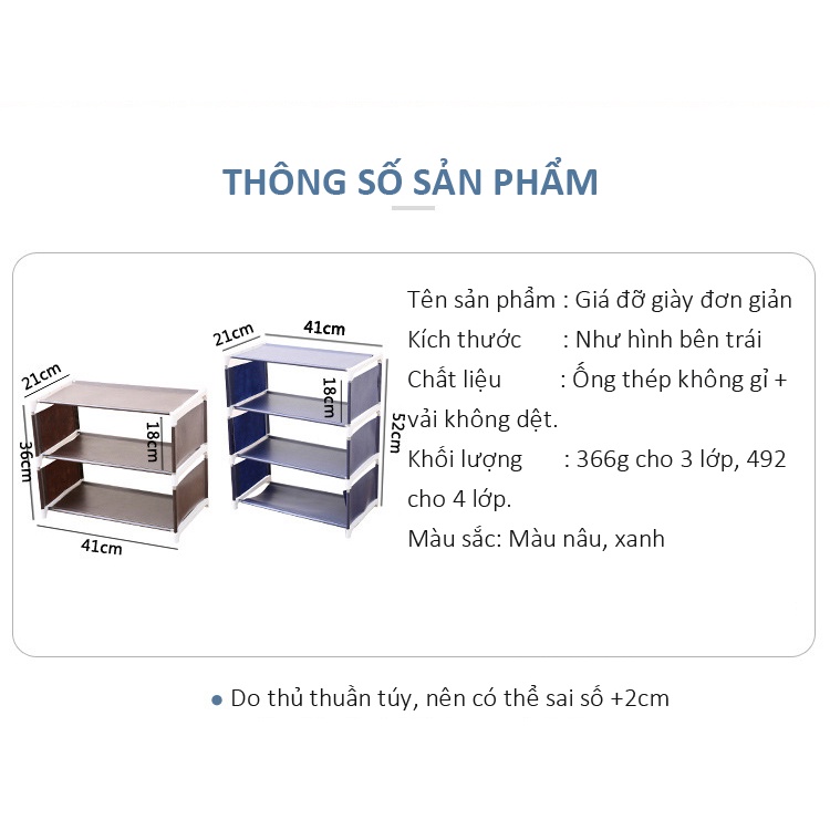 Thông tin sản phẩm:- Tên sản phẩm: Kệ giày dép lắp ráp 3, 4 tầng