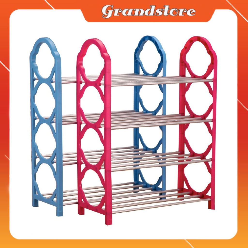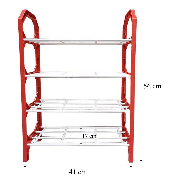 Kệ để giày dép, sách vở, đồ dùng đa năng 4 tầng lắp ráp xếp gọn bằng nhựa và inox, kệ đựng giá để giầy 4 ngăn tiện dụng