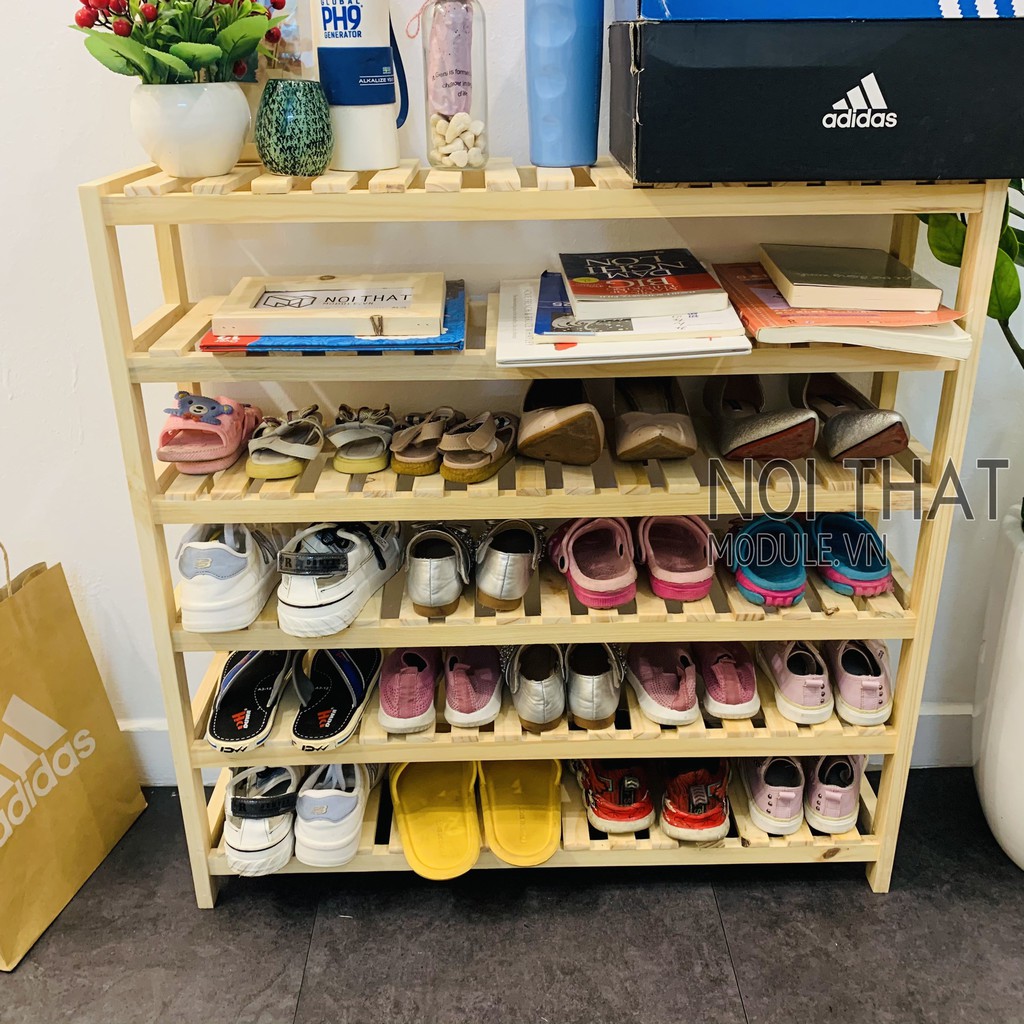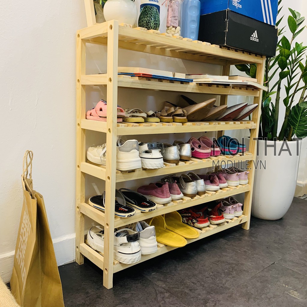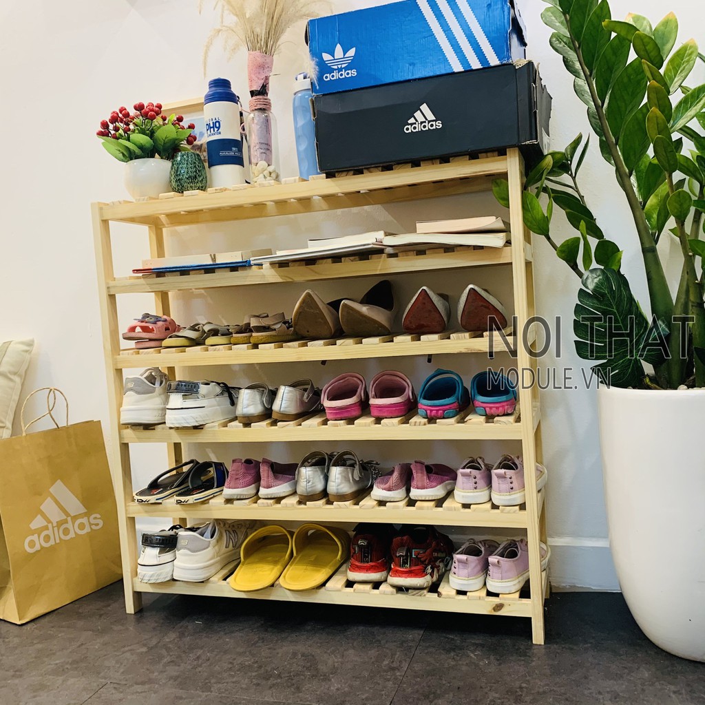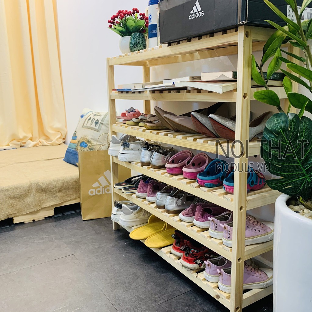 Kệ để giày dép 6 tầng lắp ghép gỗ thông tự nhiên kích thước 80cm