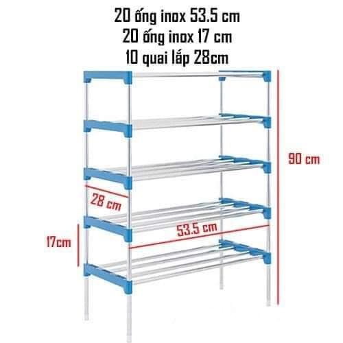 Kệ giày inox 5 tầng lắp ghép - Kệ giày dép đa năng.Chị em thường sở hữu rất nhiều loại giầy dép khác nhau từ giày bệt đến giày cao gót, từ giày không cổ đến giày cao cổ… Điều đó khiến cho không gian nhà bạn đôi khi mất đi sự gọn gàng?