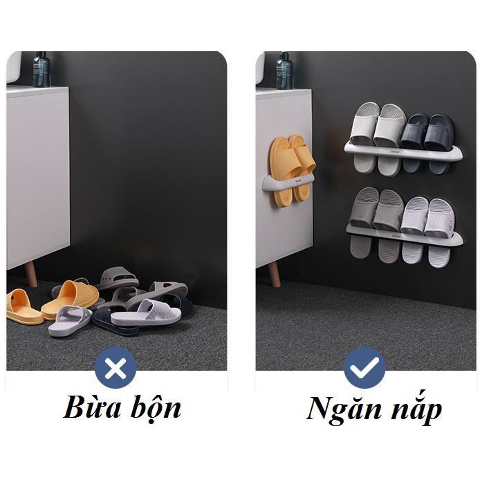 - Giá để dép treo tường gọn nhẹ, giúp tiết kiệm không gian, lại giúp dép được ráo nước nếu là dép nhà tắm