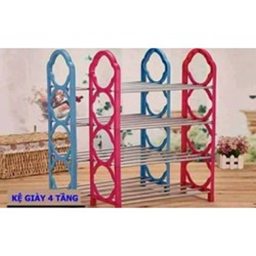 - Kệ để giày inox 4 tầng có sức chứa lên tới 8 đến 12 đôi các loại khác nhau tiện dụng, giúp tiết kiệm triệt để không gian.