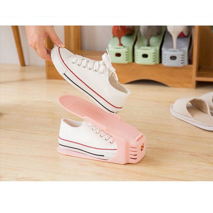 *Điểm nổi bật:Thiết kế đơn giản mà thông minh, với 2 tầng để giày, giúp bạn xếp giầy dép gọn gàng vô kệ. Ko còn phải lo giầy dép lộn xộn nữa. Giầy để trên kệ này sẽ luôn an toàn, ko bị móp méo mất dáng. Bề mặt kệ thiết kế với nhiều răng cưa, giúp giày bám chắc, và dễ lấy giày ra khỏi tủ chỉ với 1 ngón tay.