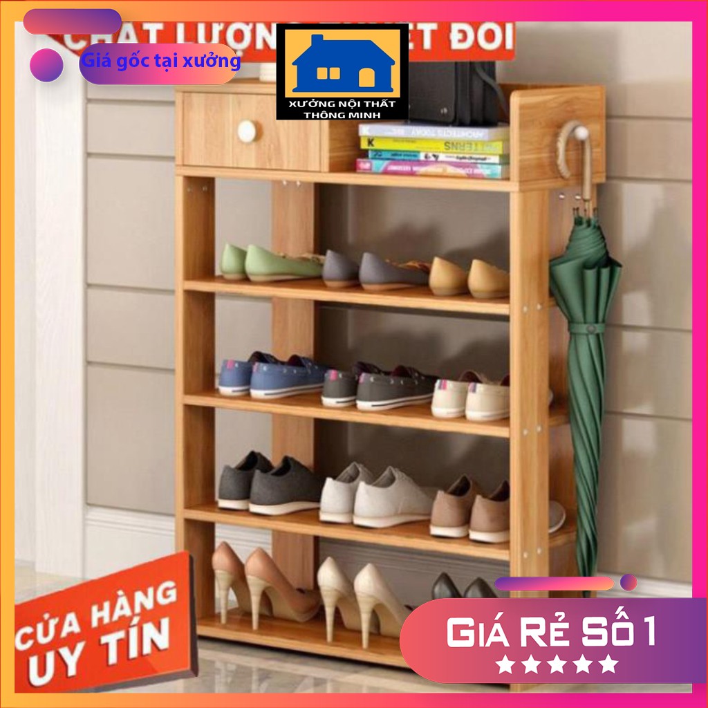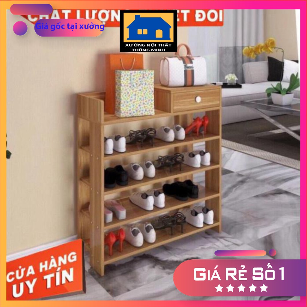 ✅ Kệ được thiết kế 5 tầng để giày dép và 1 ngăn kéo tủ đồ cá nhận như : xi đánh giày, vật dụng khác....