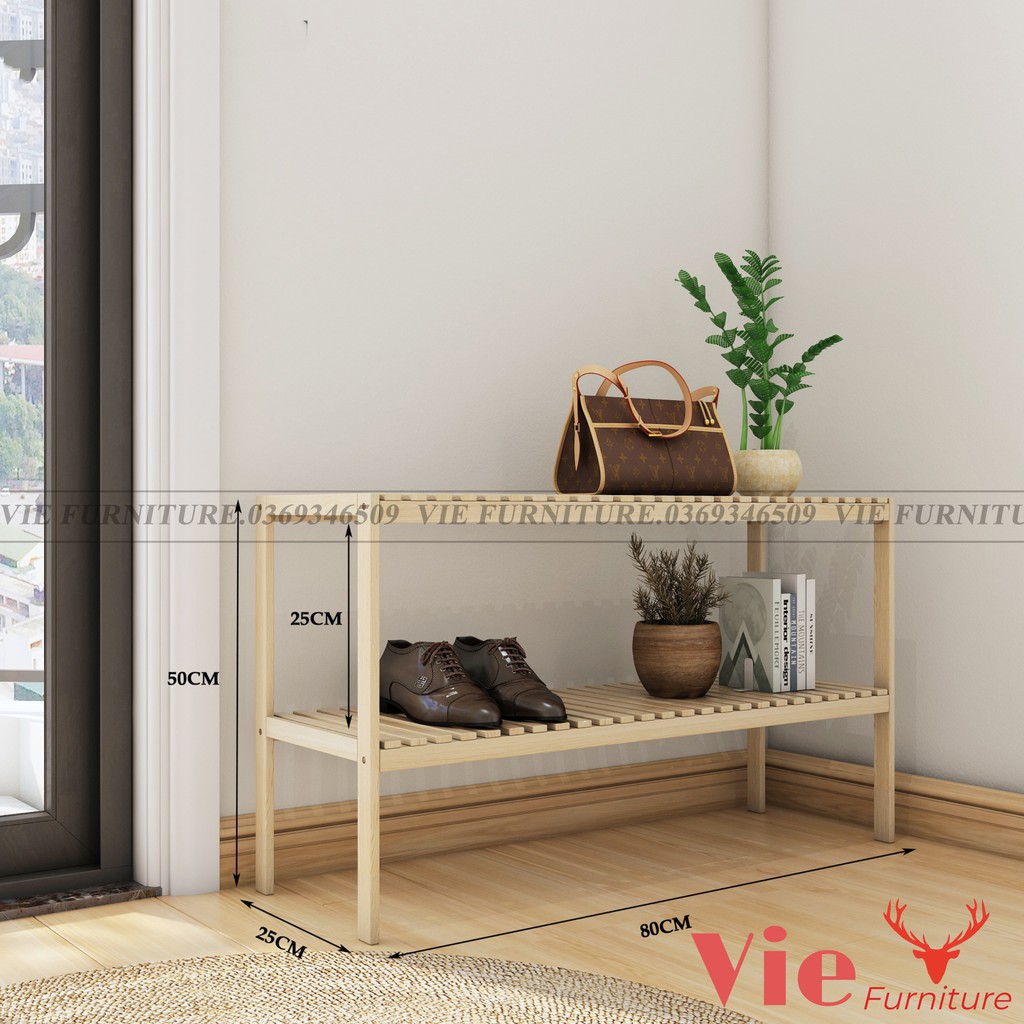 Giới thiệu Kệ Để Giày FREESHIP Kệ Đầu Giường Gỗ Thông Tự Nhiên 2 Tầng Dài 80cm Phong Cách Hàn Quốc
