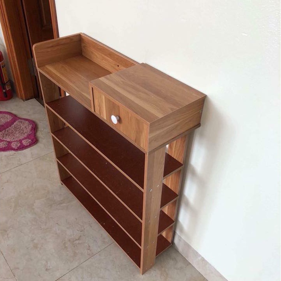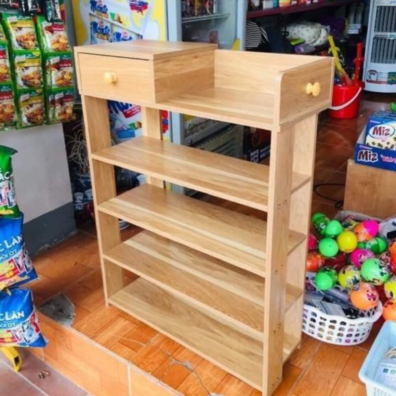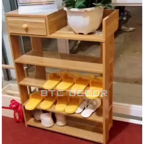 - Kệ đựng giày gỗ được thiết kế 5 tầng để giày dép và 1 ngăn kéo tủ đồ cá nhận như : xi đánh giày, vật dụng khác....