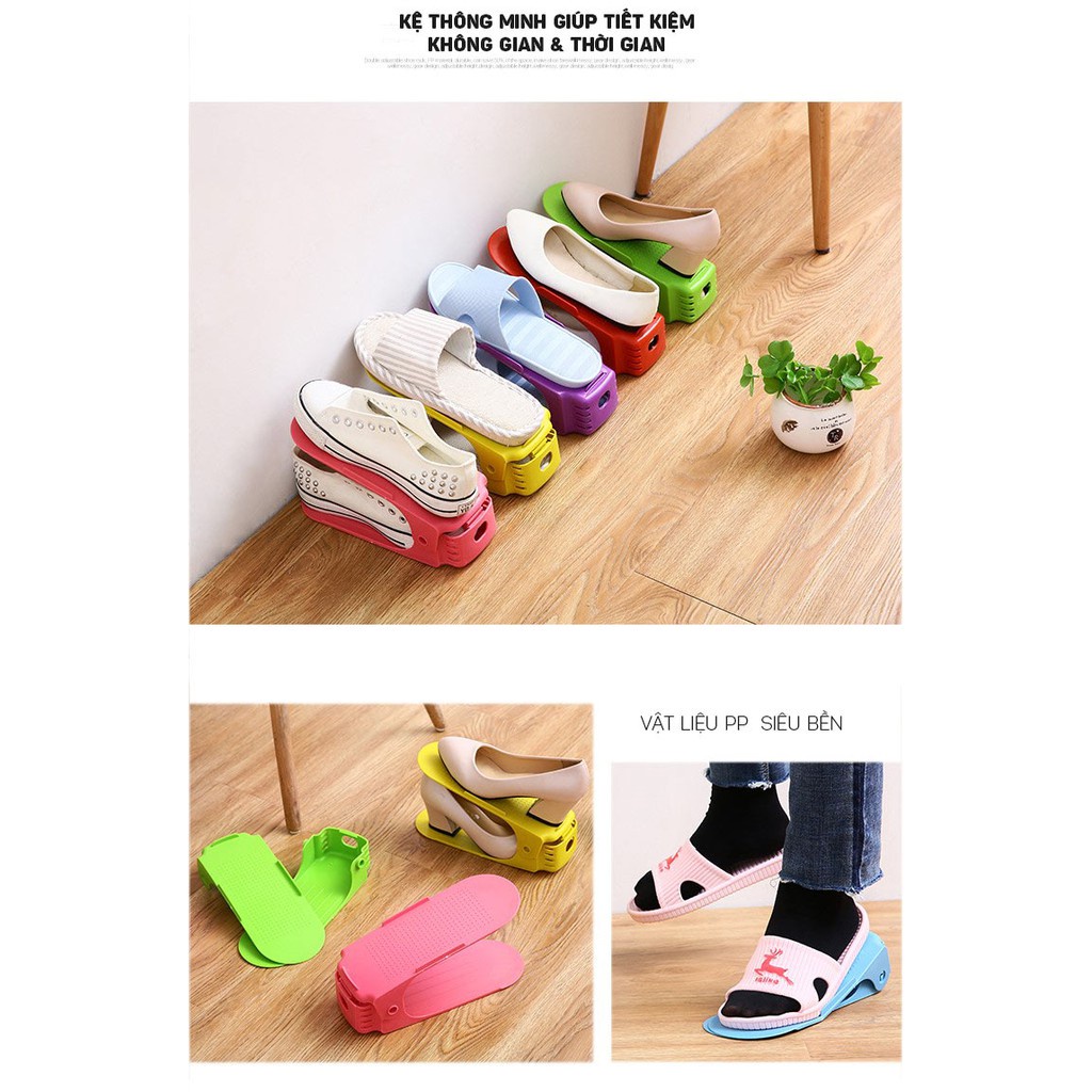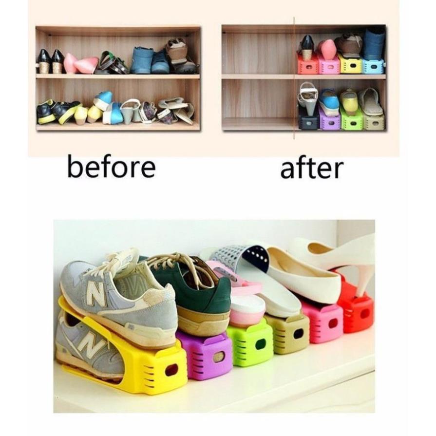 + Kệ để giày thông minh tiết kiệm diện tích được làm bằng nhựa PP có chất lượng tốt và độ bền cao, bề mặt có nhiều răng cưa giúp giày bám chắc, và dễ dàng kéo giày ra khỏi tủ chỉ với 1 ngón tay.+ Kệ thiết kế riêng biệt cho từng đôi giày vô cùng gọn gàng, giúp tiết kiệm diện tích.