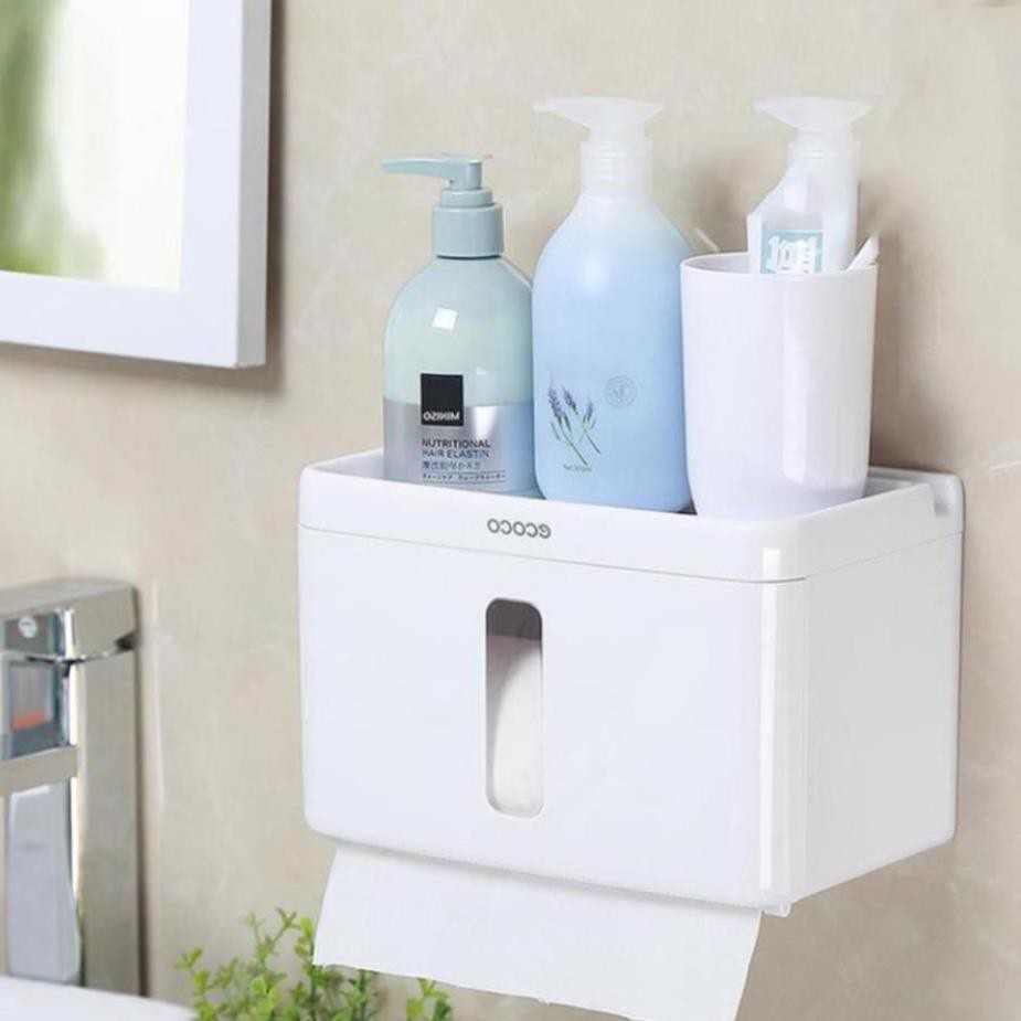 - Kệ để giấy nhà vệ sinh,Giữ cho cuộn giấy luôn khô ráo, sạch sẽ. Mặt trên hộp phẳng có thể sử dụng như 1 giá để đồ tiện ích giúp bạn để chìa khóa, điện thoại hay các vật dụng cá nhân khác.