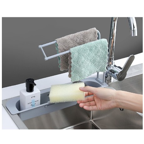 Kệ Để Giẻ Rửa Bát Rút Gọn - Có Cây Phơi Khăn Và Lỗ Thoát Nước HUSOCó 4 màu: Xanh - Xám - Trắng - Hồng (Giao màu ngẫu nhiên)