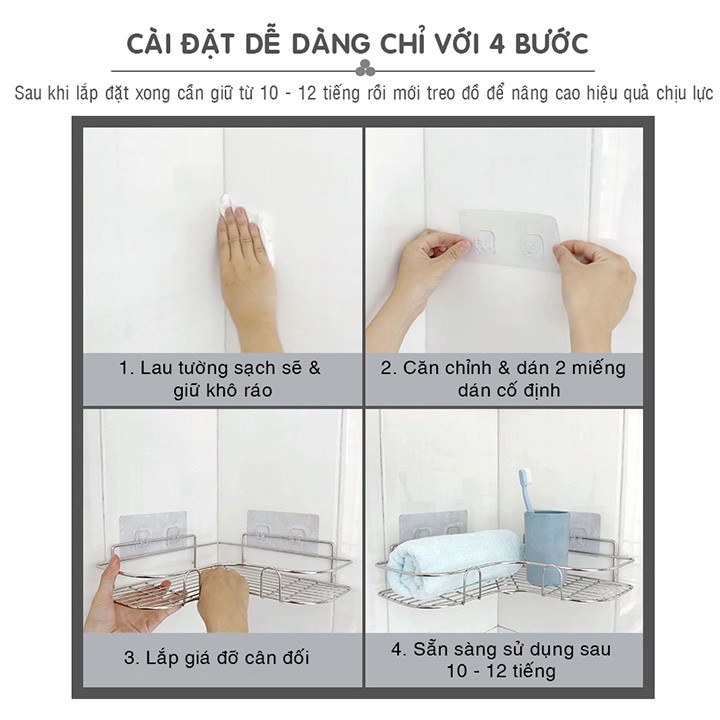 🔹Bộ SP gồm : 01 kệ góc và 2 miếng dán như hình