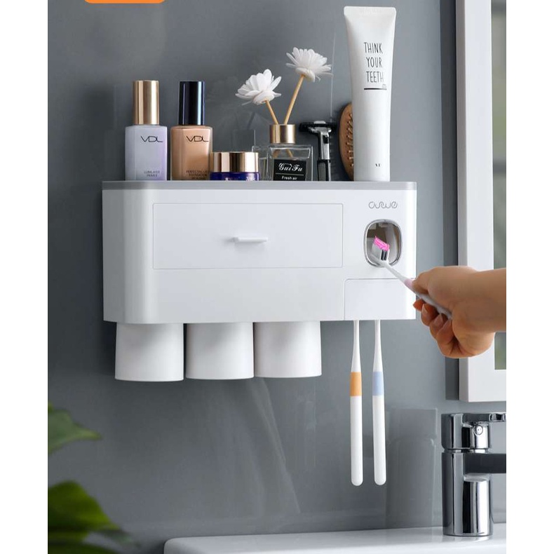 KỆ ĐỂ KEM ĐÁNH RĂNG VÀ BÀN CHẢI THÔNG MINH 3 CỐC CÓ NHẢ KEM ĐÁNH RĂNG TỰ ĐỘNG KÈM CỐC HÚT TỪ TÍNH