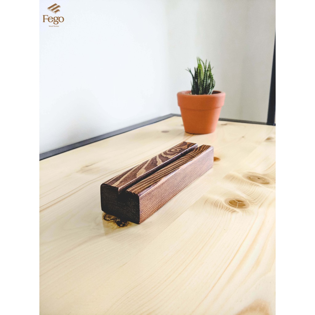 Nhà cửa & Đời sống > Nội thất > Kệ & Giá || Kệ để lịch bàn FEGO/ Chân đế gỗ tranh ảnh lưu niệm, namecard, menu màu nâu rustic rãnh 8mmCòn hàng