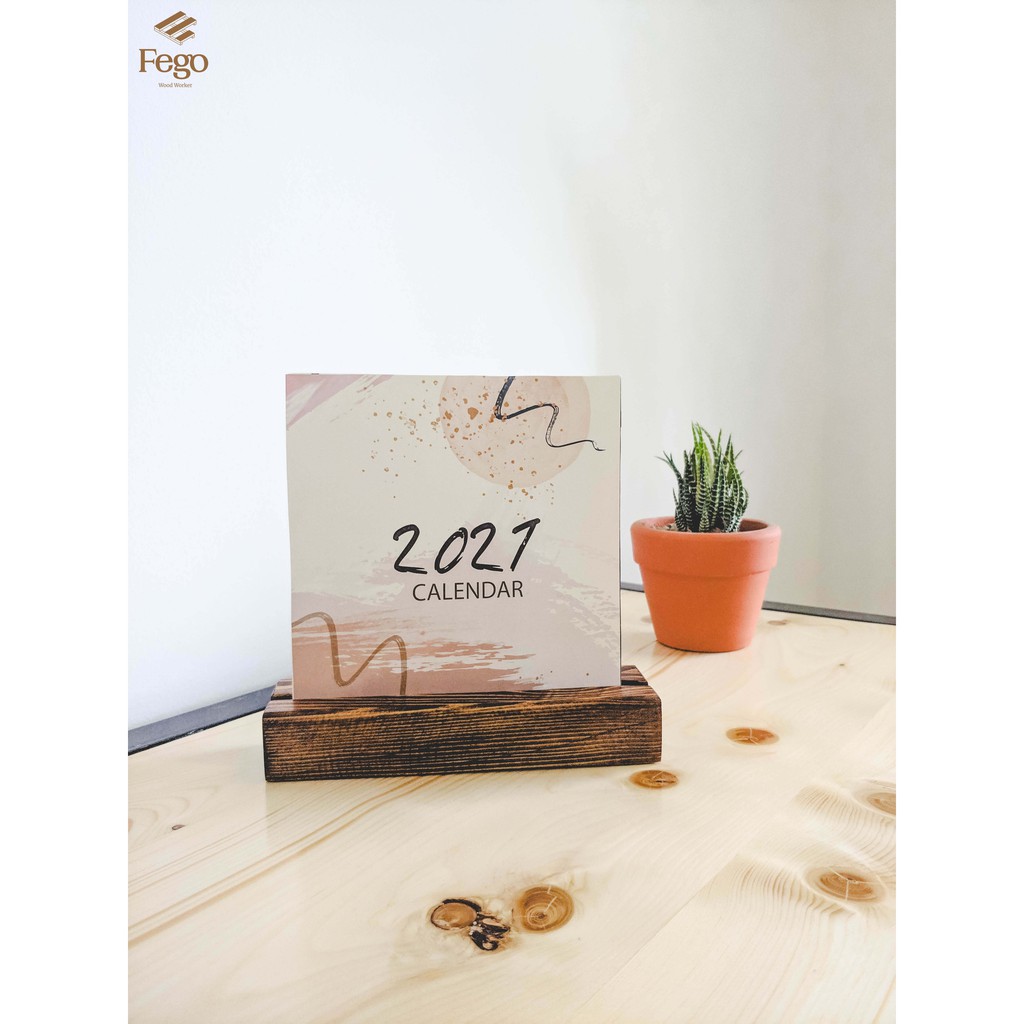 Kệ để lịch bàn FEGO/ Chân đế gỗ tranh ảnh lưu niệm, namecard, menu màu nâu rustic rãnh 8mm