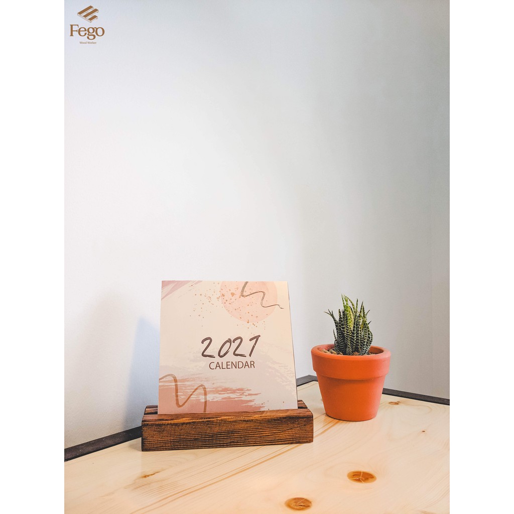 Giới thiệu Kệ để lịch bàn FEGO/ Chân đế gỗ tranh ảnh lưu niệm, namecard, menu màu nâu rustic rãnh 8mm