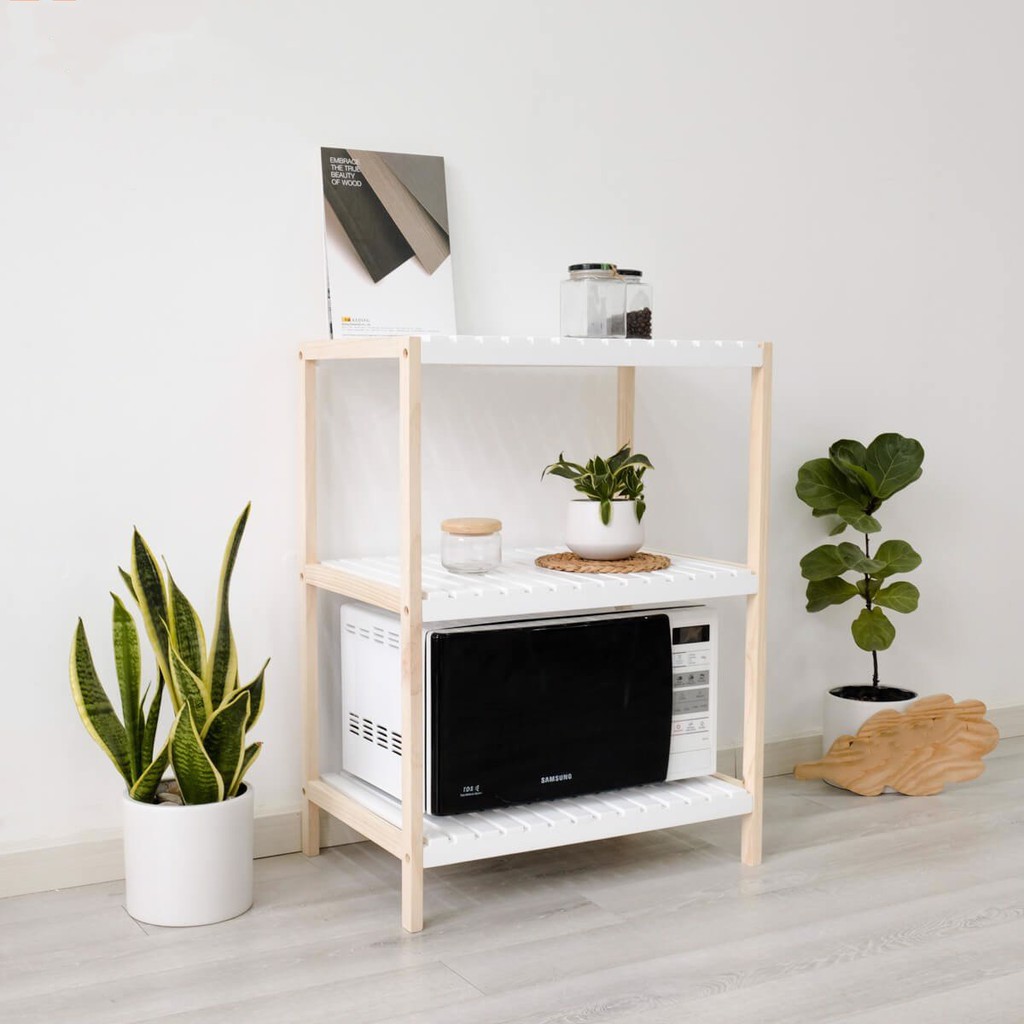 Kệ Để Lò Vi Sóng, Nồi Cơm Điện Đa Năng - Kệ Trang Trí Phối Gỗ Và Trắng
