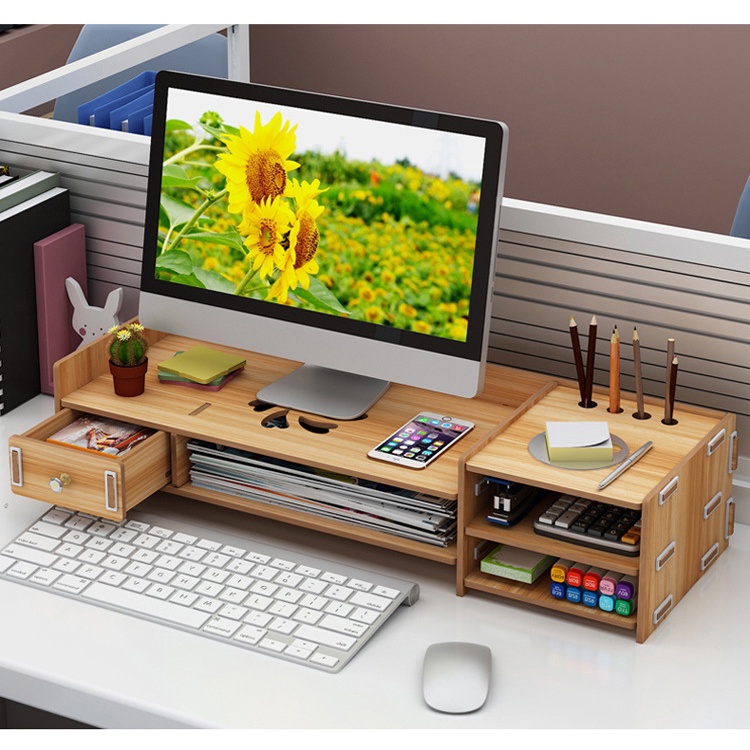 Kiểu dáng hiện đại, thời trang, chất liệu tự nhiên, thiết kế tháo lắp thông minh, là món quà hấp dẫn cho người thân hay để trang trí cho bàn học/làm việc của gia đình!Dùng để máy vi tính, hồ sơ, sách vở, bút, đồ dùng văn phòng.., đặt trên bàn làm việc. Kệ được thiết kế thông minh nhằm làm giảm hiệu ứng đau lưng mỏi cổ cho dân văn phòng, sinh viên, học sinh.. khi phải làm việc với máy vi tính thường xuyên và liên tục .