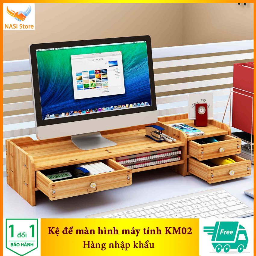 Nhà Cửa & Đời Sống > Đồ nội thất > Nội thất phòng làm việc || Kệ để màn hình máy tính KM02 (Nhập Khẩu) - Kệ đa năng bằng gỗ cứng chắc, có hộc cất bàn phím, ngăn kéo, hộc để tài liệuCòn hàng