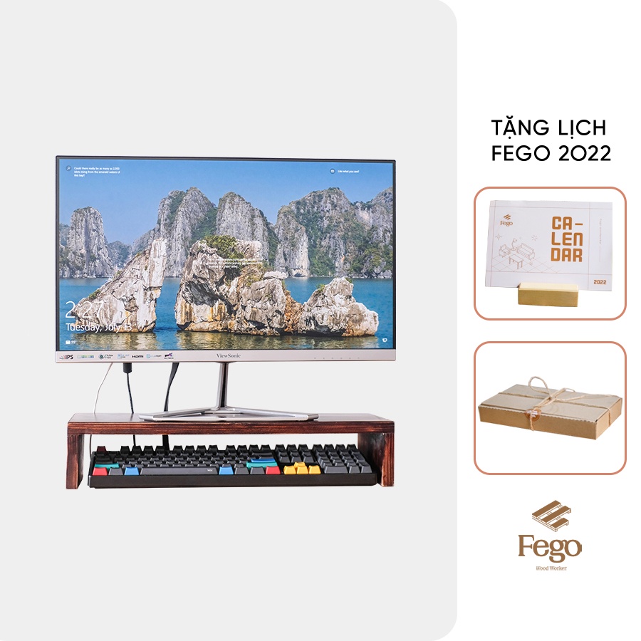 - Kệ gỗ màn hình, kệ để màn hình, bàn kê màn hình FEGO giúp bạn ngồi đúng tư thế làm việc; nơi cất gọn bàn phím và chuột giúp mở rộng không gian trên bàn làm việc hiệu quả hơn.