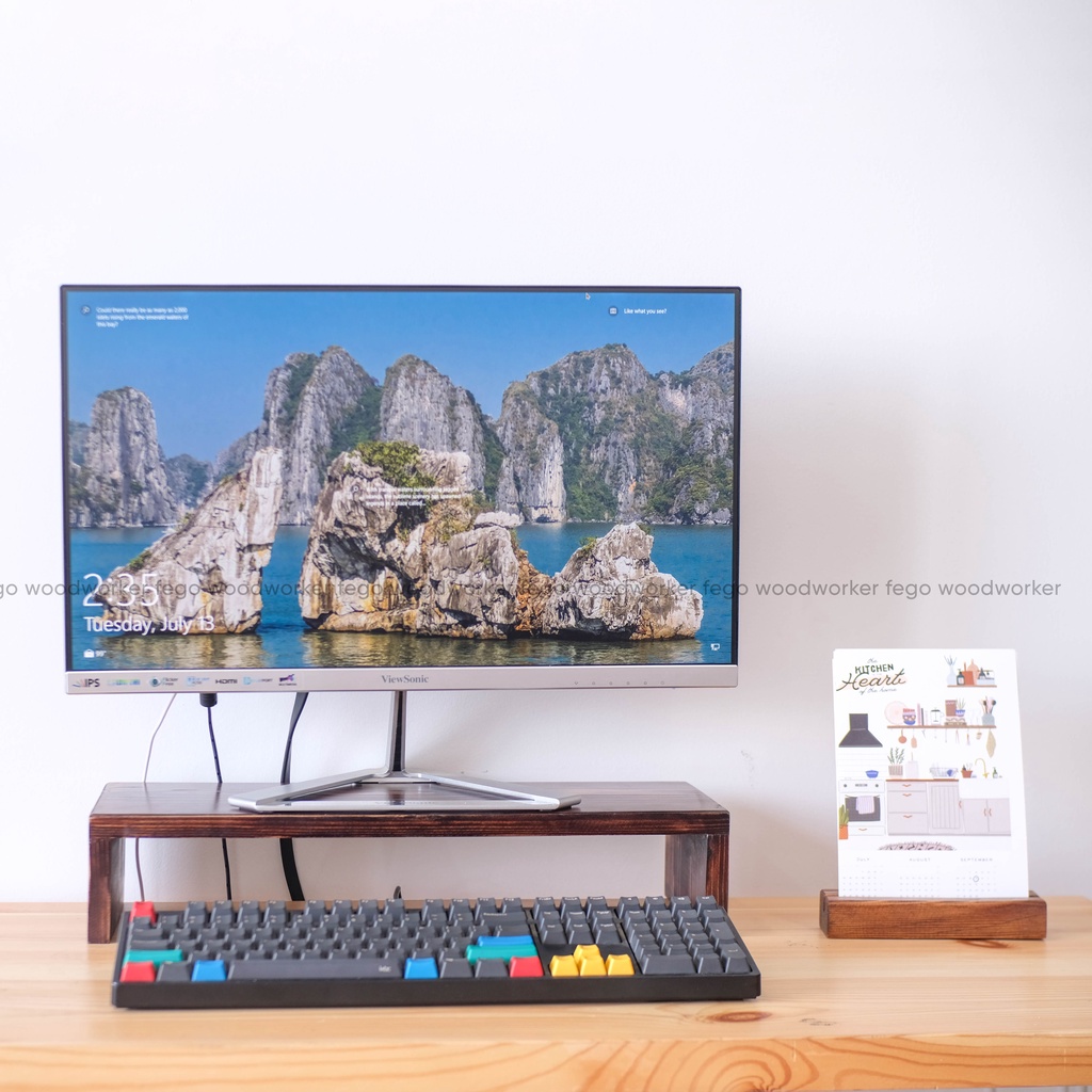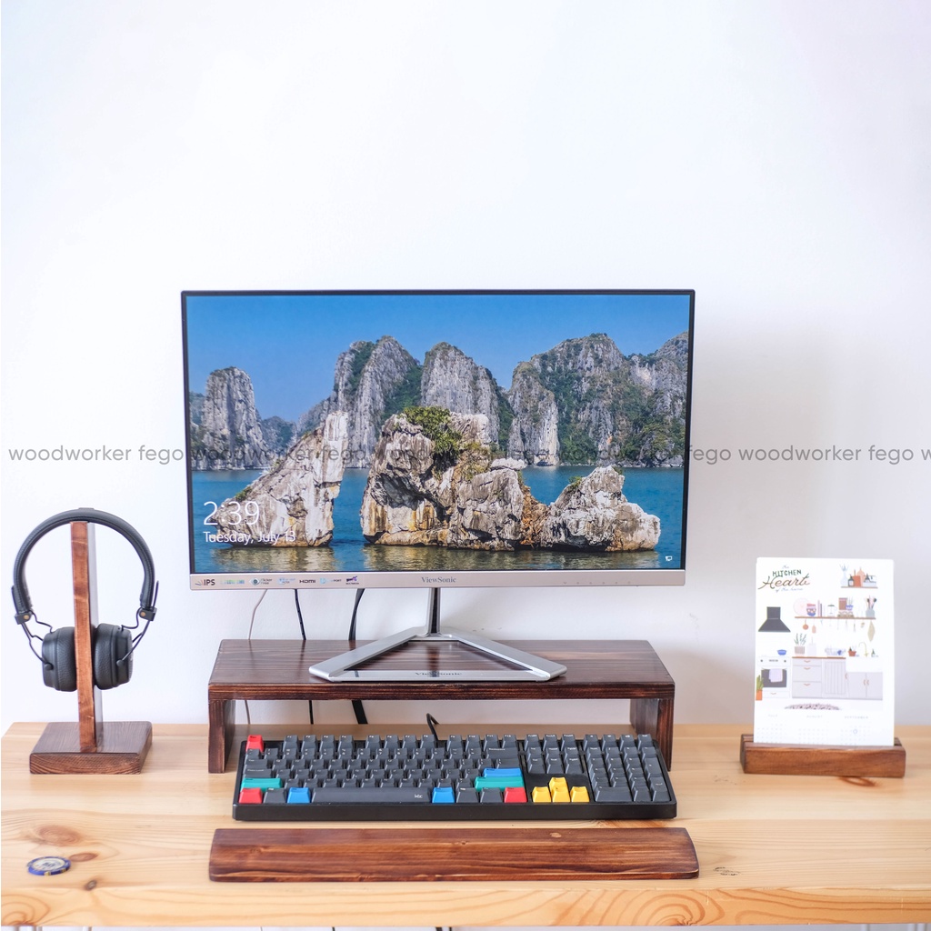 Kệ gỗ thông để màn hình của FEGO sẽ xoá bỏ mọi sự khó chịu của bạn trong vòng 30 giây. Kệ màn hình Monitor Stand giúp nâng độ cao của màn hình lên để khi làm việc bạn luôn ngồi thẳng theo đúng tỷ lệ an toàn cho cột sống; ngoài ra nó còn là nơi để cất các Keyboard và Mouse khi bạn cần không gian để viết, vẽ, thiết kế và làm việc khác,..
