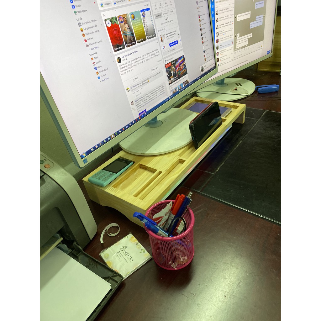 Kệ để màn hình máy tính PC bằng gỗ thông tự nhiên để bàn hỗ trợ tản nhiệt kê cao màn hình chống gù mỏi đa năng tiện ích