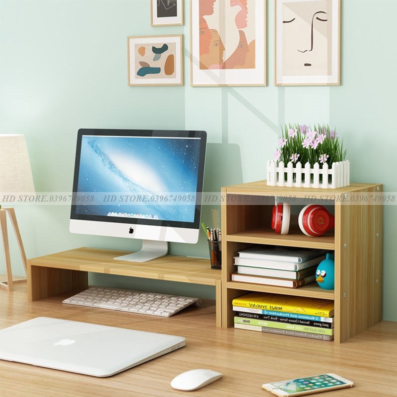 [Mã LIFEBKM1 giảm 10% tối đa 1 triệu đơn từ 500k] KỆ ĐỂ MÁY TÍNH kèm KỆ SÁCH ĐỂ BÀN LẮP GHÉP - MÀU VÂN GỖ