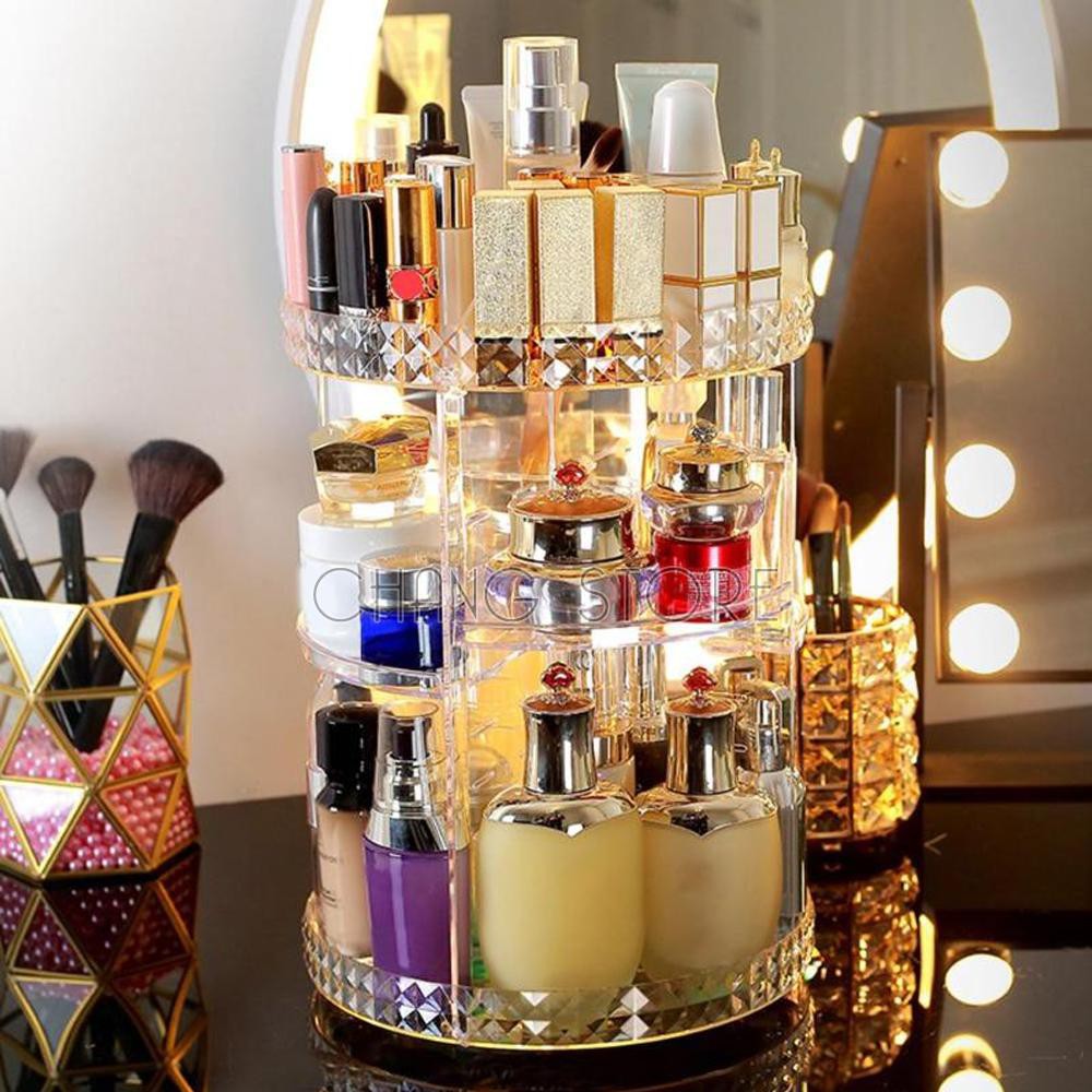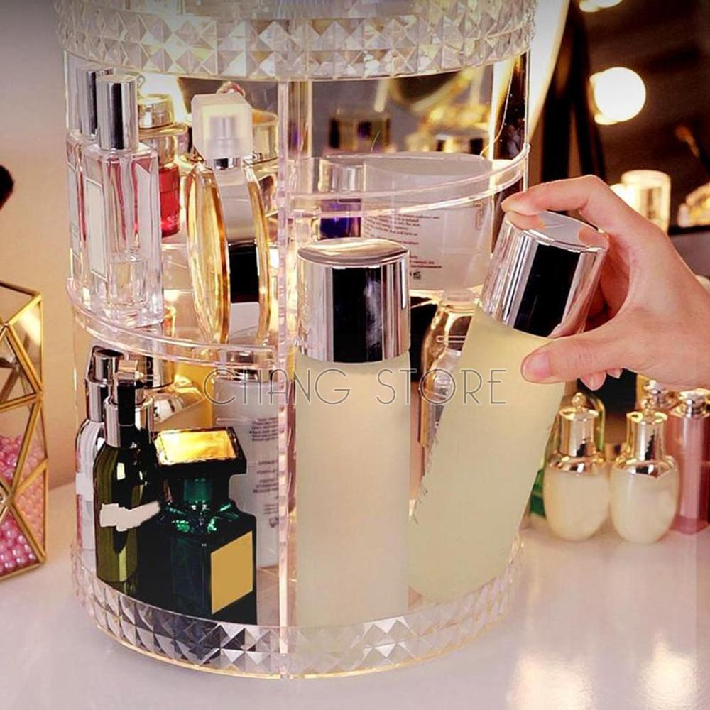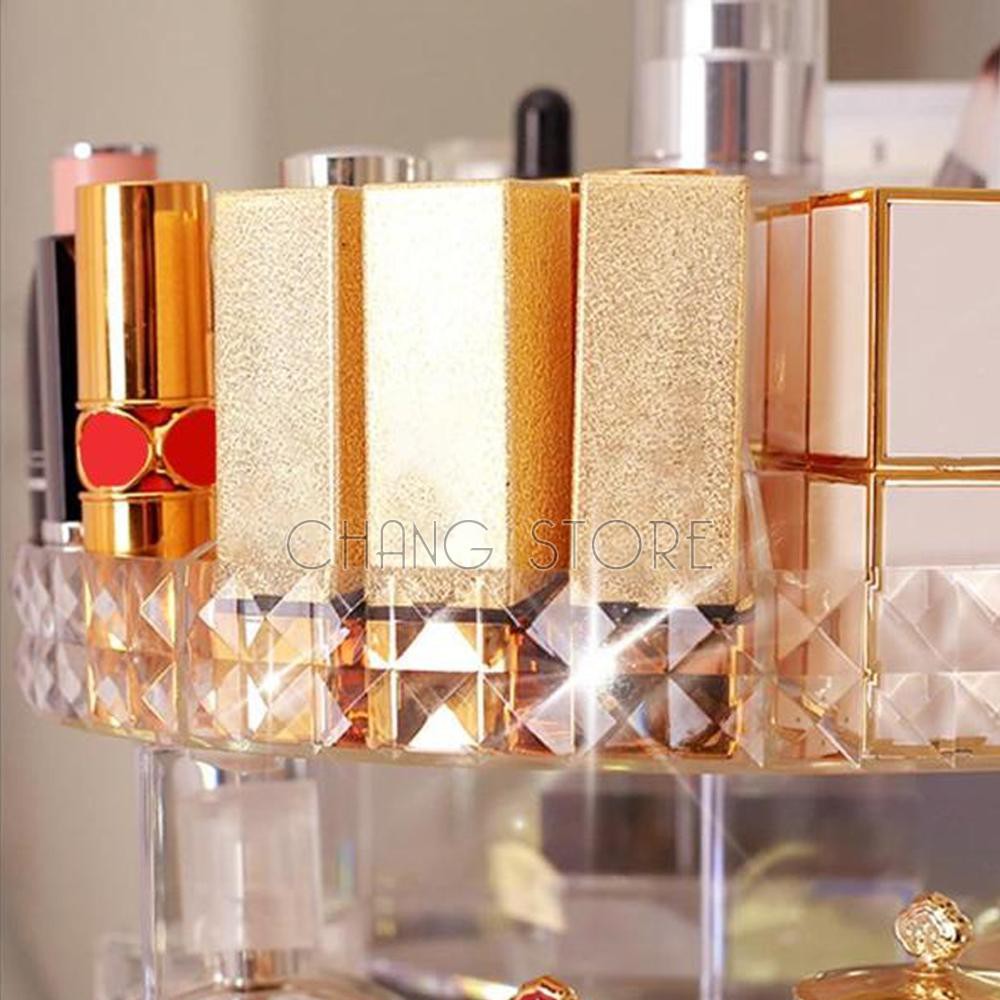 Kệ Để Mỹ Phẩm Và Đồ Trang Điểm Nhựa Mica Xoay 360 Độ