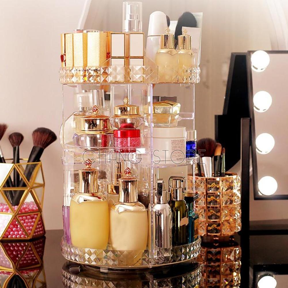 Kệ Để Mỹ Phẩm Và Đồ Trang Điểm Nhựa Mica Xoay 360 Độ☘️Điểm thích ở đây là kệ này xoay được 360 độ để tìm đồ 1 cách đơn giản!