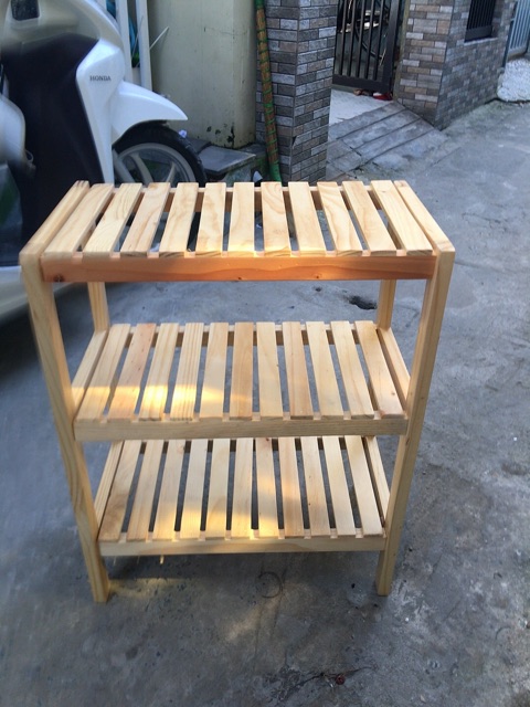 Kệ gỗ 3 tầng kt 50*26*62 cmChất liệu: Gỗ thông nhập khẩu, sơn 3 lớp bảo vệ ngả vàng y hình. Sản phẩm shop tự chụp nên khách yên tâm về chất lượng nhé ạ