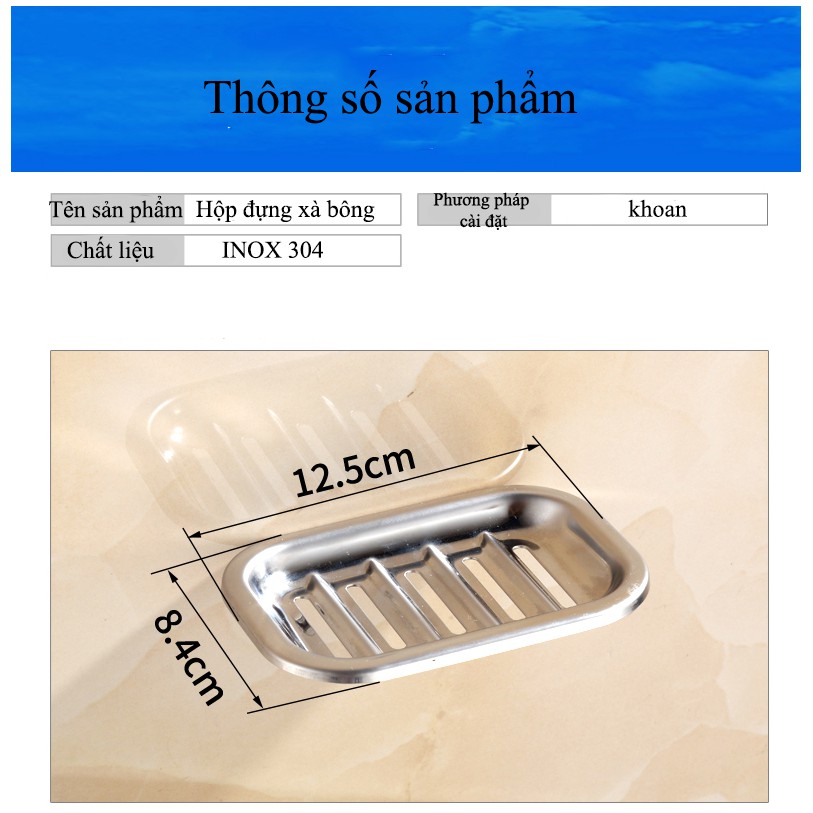 ƯU ĐIỂM :1.Khay đựng xà phòng, xà bông INOX 304 được sản xuất bằng công nghệ dập khuôn, sử dụng nguyên liệu Inox 304 chất lượng cao, không gỉ sét, mẫu mã đẹp, độ bền cao, thời hạn bảo hành 05 năm