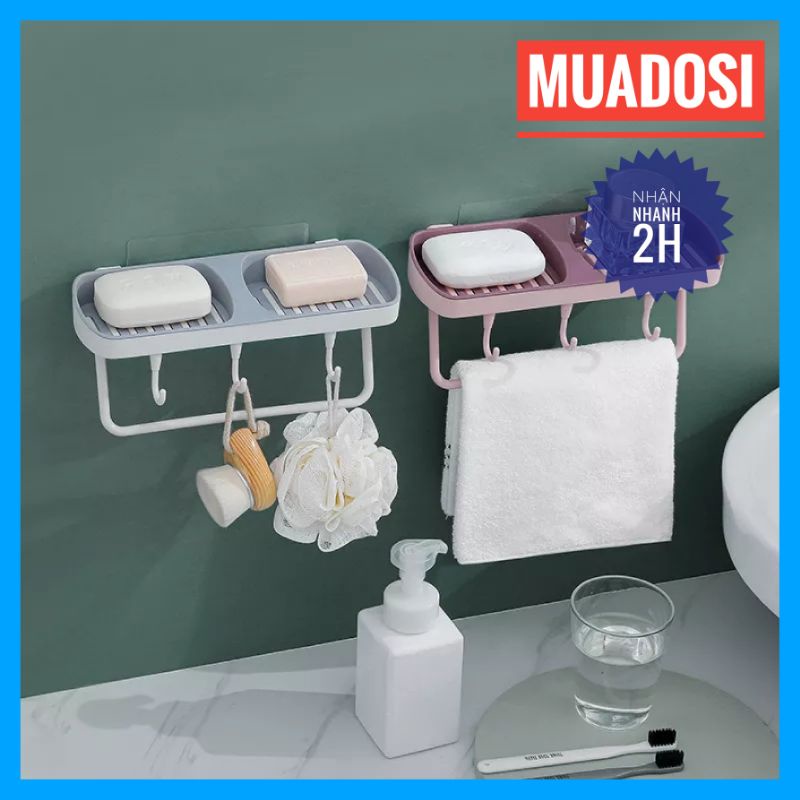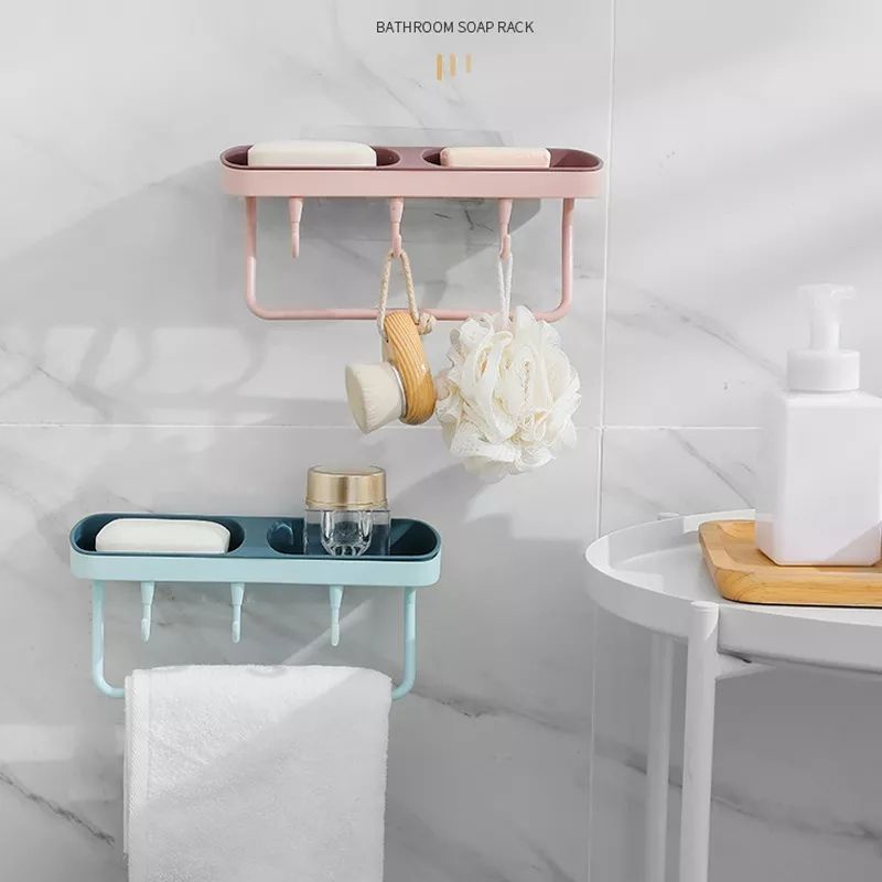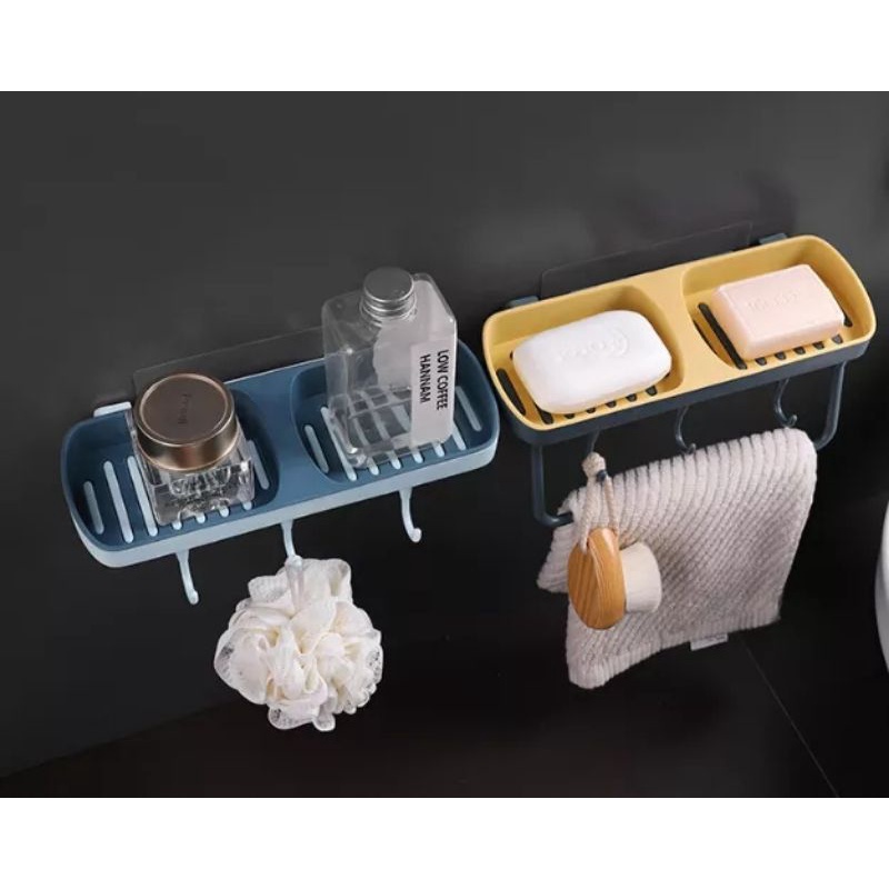 Nhà cửa & Đời sống > Đồ dùng phòng tắm > Kệ đựng xà phòng || Kệ Để Xà Bông Xà Phòng Dán Tường 2 Ngăn Có Giá Treo Khăn Kèm 3 Móc Kệ Nhà Tắm Kệ Để Đồ Phòng Tắm Đa NăngCòn hàng