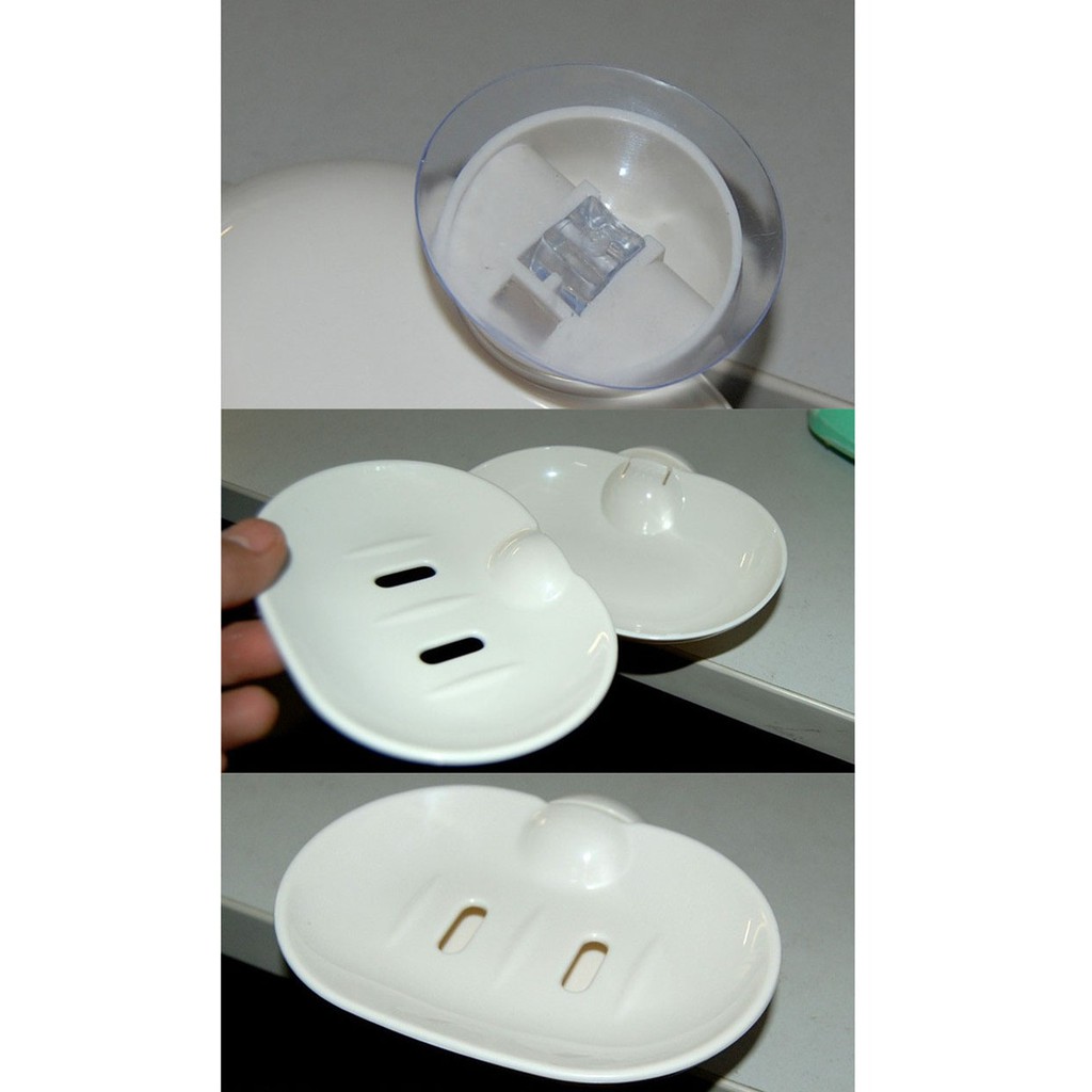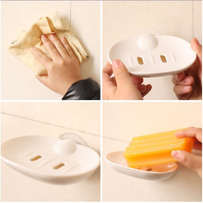 - Kệ để xà phòng bánh 2 lớp. Sử dụng móc hút chân không hít chặt vào tường men, tường kính rất chắc và bền.