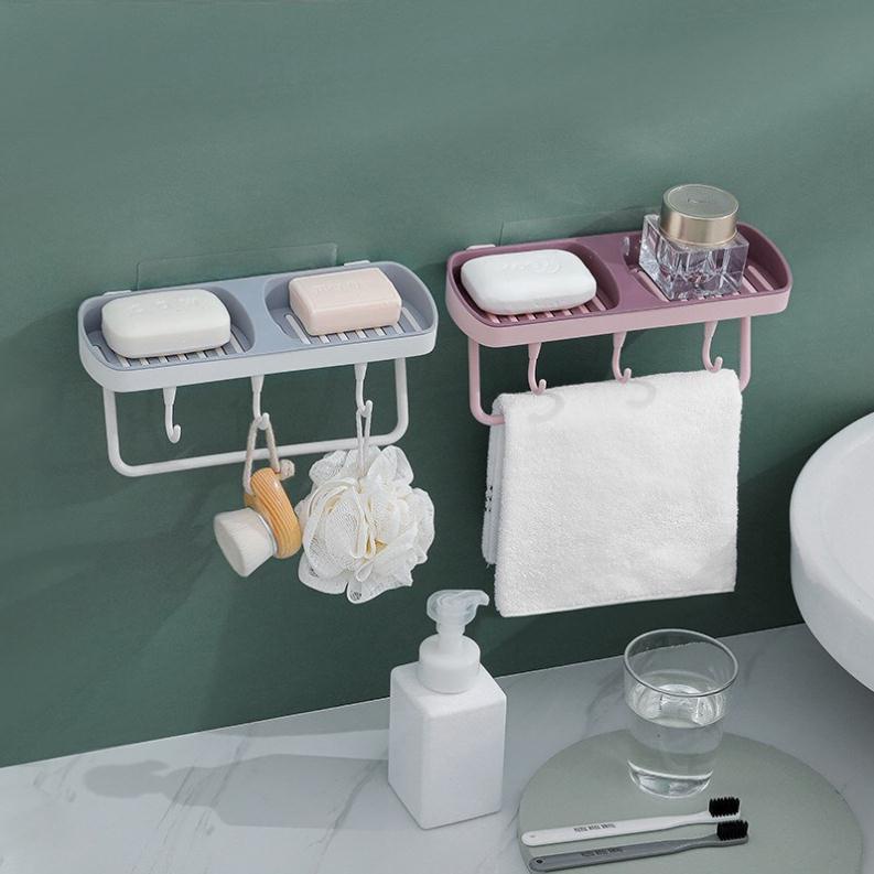 Nhà cửa & Đời sống > Đồ dùng phòng tắm > Kệ đựng xà phòng || Kệ để xà phòng 2 ngăn dán tường kèm 3 móc và thanh treo khănCòn hàng