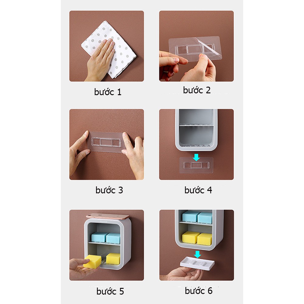 Chúng ta không cần phải khoan tường để lắp kệ để đồ nữa mà chỉ cần một bề mặt sạch để dán miếng dán lên, kệ có thể tháo ra lắp lại rất tiện dụng