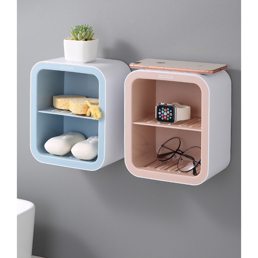 Kệ dán tường 2 tầng ECOCO tiện dụng được làm bằng nhựa cao cấp,kích thước: 190 x 164 x 105 mm