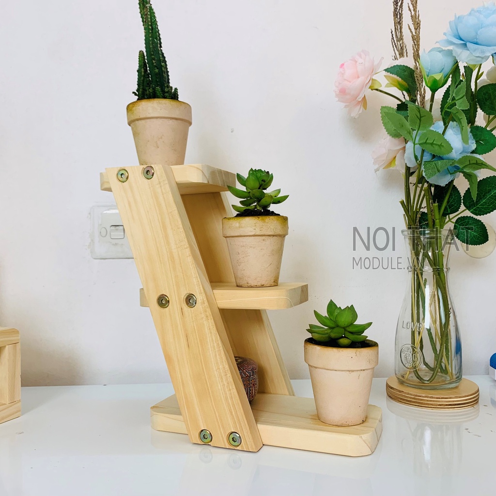 Kệ decor đựng chậu hoa sen đá, cây phong thủy gỗ thông tự nhiên bền đẹp ( ẢNH THẬT )
