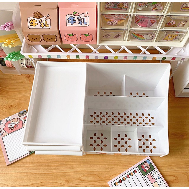 Nhà Cửa & Đời Sống > Tủ đựng & Hộp lưu trữ > Kệ & Tủ || Kệ Decor Trang Trí Bàn Học Có Ngăn Kéo, Kệ Đựng Mỹ Phẩm Đa Năng Tiện Dụng 2 Tầng Nhiều NgănCòn hàng