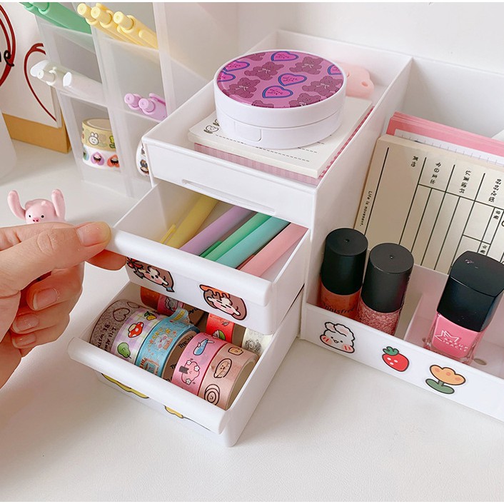 Kệ Decor Trang Trí Bàn Học Có Ngăn Kéo, Kệ Đựng Mỹ Phẩm Đa Năng Tiện Dụng 2 Tầng Nhiều Ngăn