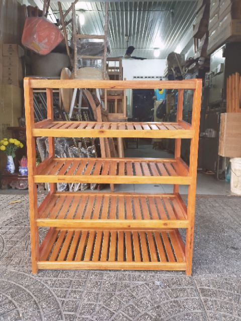 Kích thước : cao 85cm. Ngang 60cm. Sâu 30cmKệ được sản xuất từ gỗ cao su tự nhiên, xử lý chống mối mọt. Chiều ngang 60 để được 3 đôi.