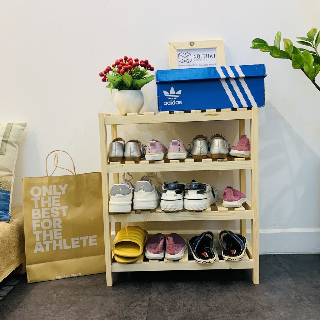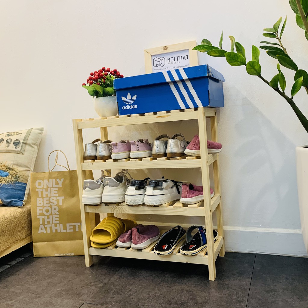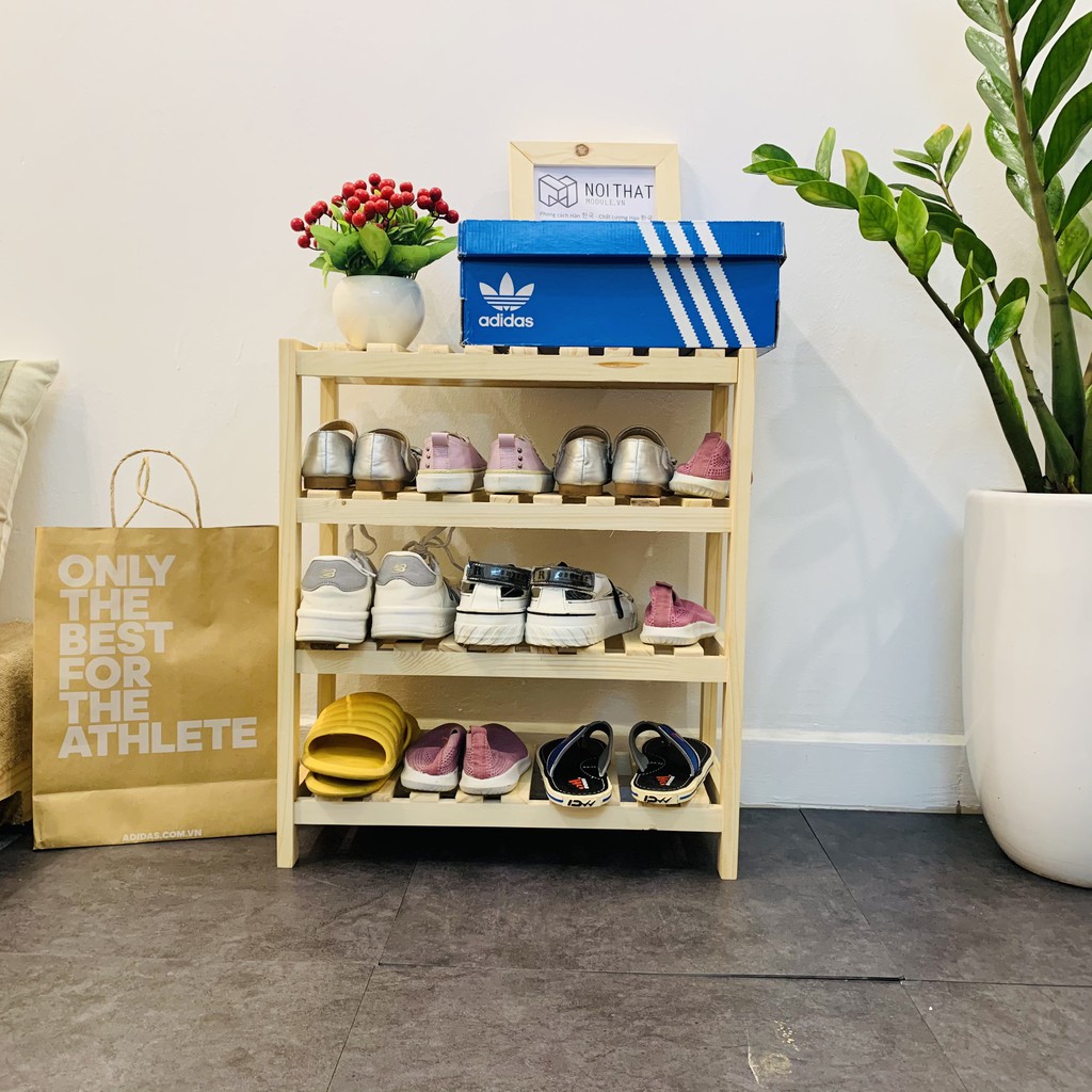 KỆ DÉP, KỆ GIÀY 4 TẦNG GỖ THÔNG KÍCH THƯỚC 50CM ( GIÁ RẺ )