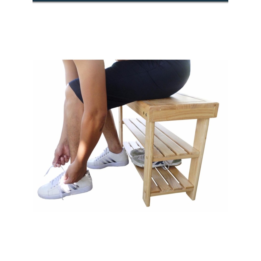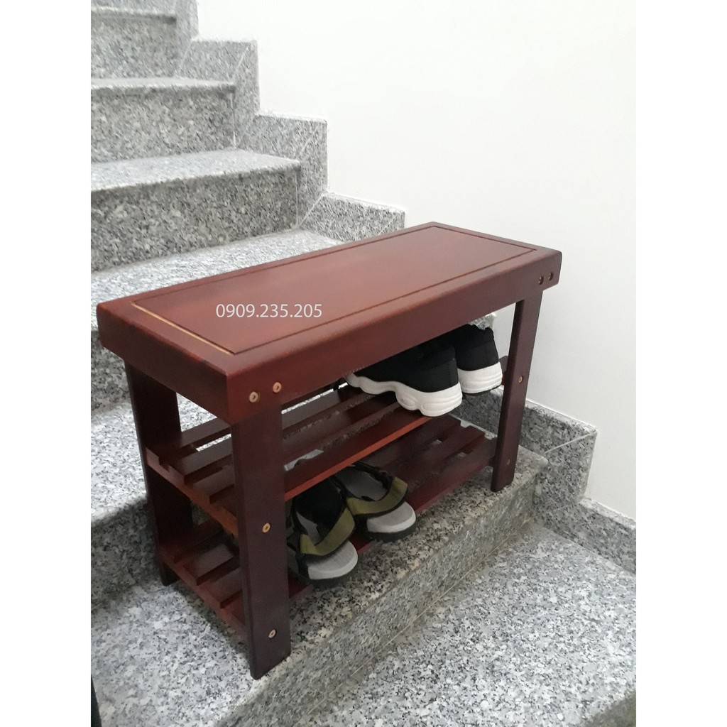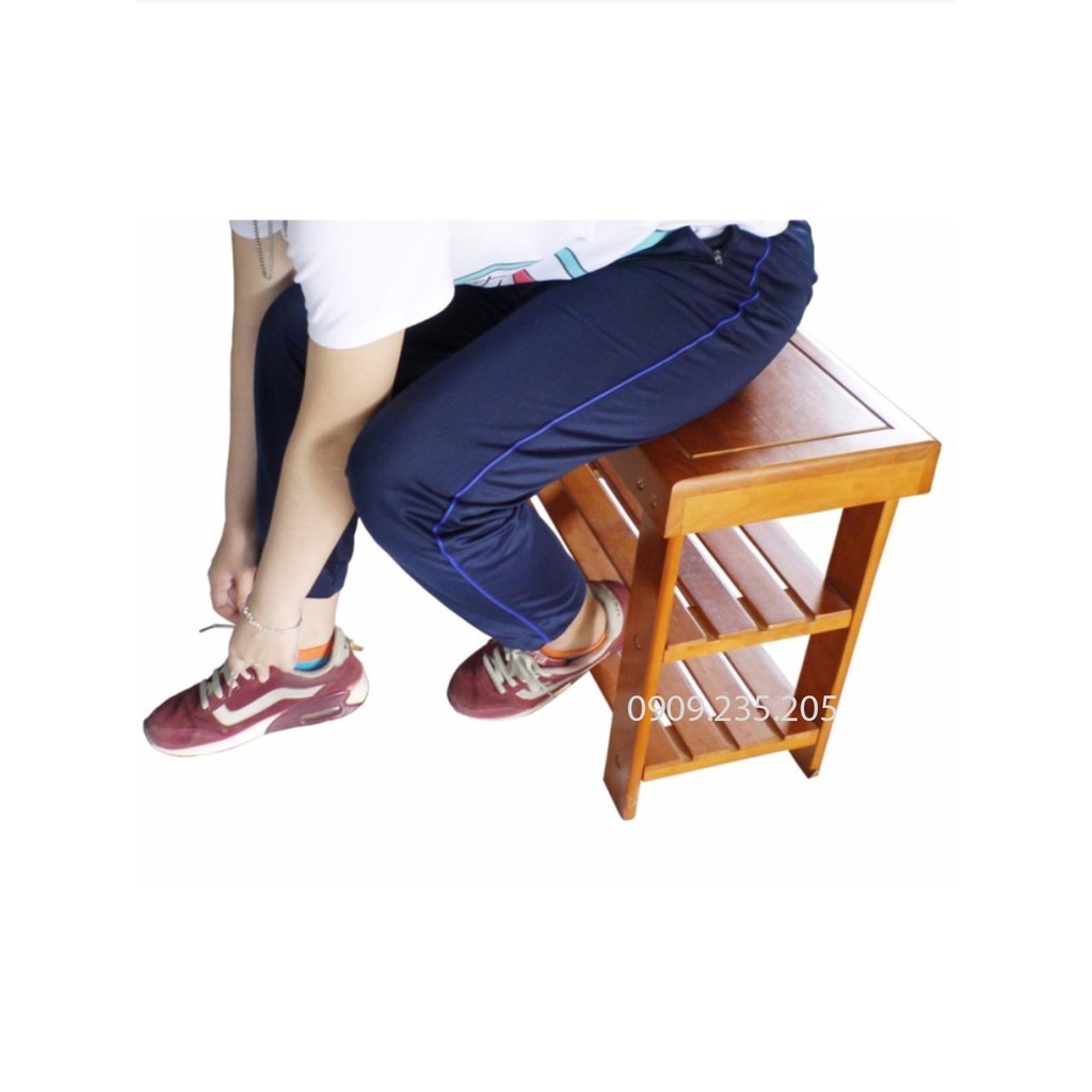 kệ Dép Kết Hợp Ghế Ngồi Gỗ Cao Su - Kệ Dép Đa Năng