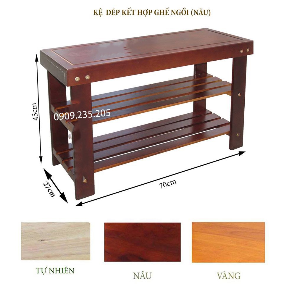 Kệ dép kết hợp ghế ngồi, gỗ cao su chắc chắn - Kệ dép và ghế ngồi-KÍCH THƯỚC:Rộng 65 x Sâu 27 x Cao 45 (cm)