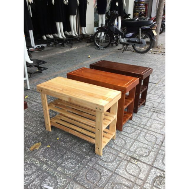 Quy cách: 2 tầng, rộng 65cm, sâu 27cm, cao 45cm (mỗi tầng cao 16 cm), dày dặn và chắc chắn. Ngồi trực tiếp trên kệ để mang giày, dép