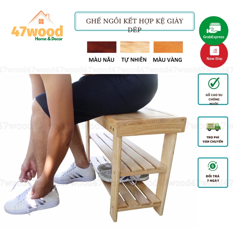 KỆ GIÀY KẾT HỢP GHẾ NGỒI MÀU GỖ TỰ NHIÊNChất liệu: Gỗ cao su ghép