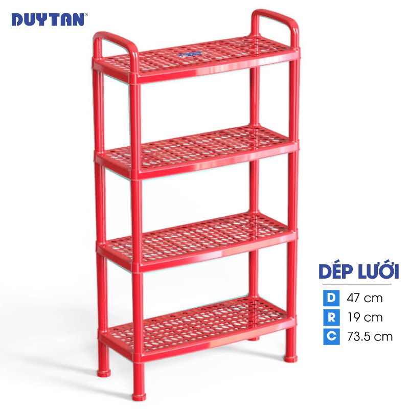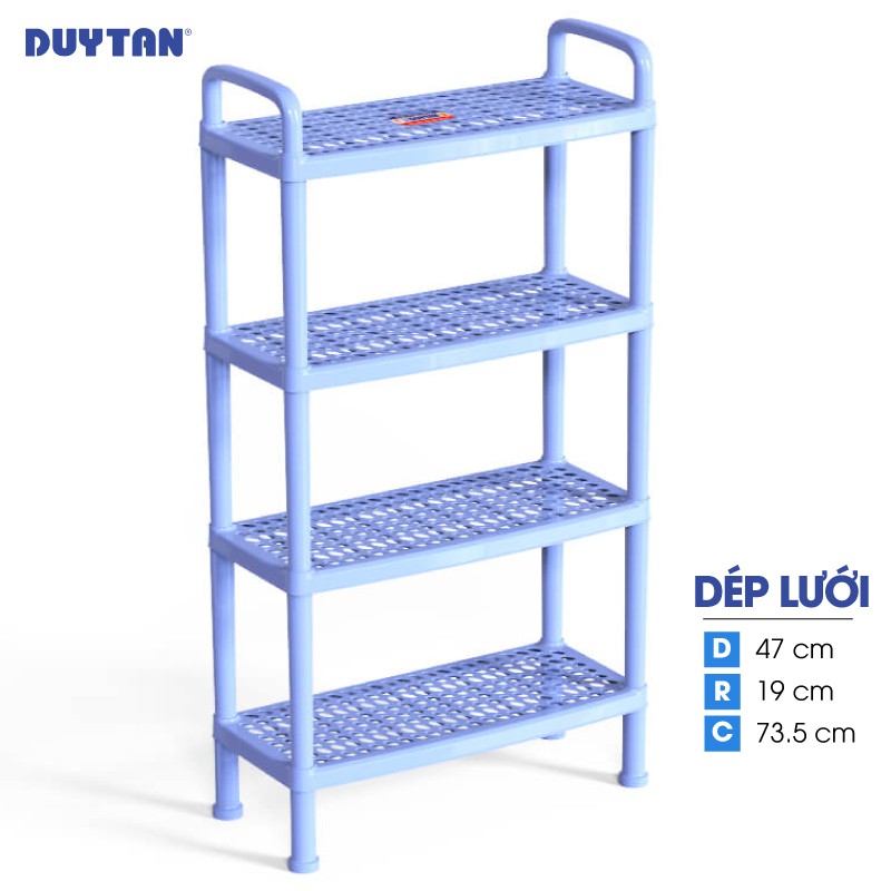 Kệ Dép Lưới Nhỏ Duy Tân 4 Tầng - Kích thước 42 x 19 x 73.5cmKệ dép lưới nhỏ Duy Tân - 4 tầng với thiết kế hiện đại, gọn nhẹ nhưng lại rất chắc chắn sẽ giúp bạn bảo quản và cất giữ giày dép của gia đình một cách ngăn nắp, tránh việc thất lạc trong quá trình sử dụng và nhà cửa cũng không còn bề bộn. Kệ với màu sắc tươi sáng và họa tiết trang nhã sẽ góp phần tô điểm cho không gian sống của gia đình bạn.