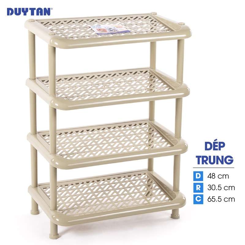 Kệ Dép Trung Duy Tân 4 Tầng - Kích thước 48 x 30.5 x 65.5 cmKệ dép Duy Tân - 4 tầng với thiết kế hiện đại, gọn nhẹ nhưng lại rất chắc chắn sẽ giúp bạn bảo quản và cất giữ giày dép của gia đình một cách ngăn nắp, tránh việc thất lạc trong quá trình sử dụng và nhà cửa cũng không còn bề bộn. Kệ với màu sắc tươi sáng và họa tiết trang nhã sẽ góp phần tô điểm cho không gian sống của gia đình bạn.