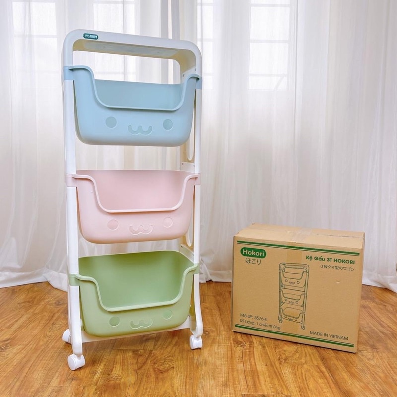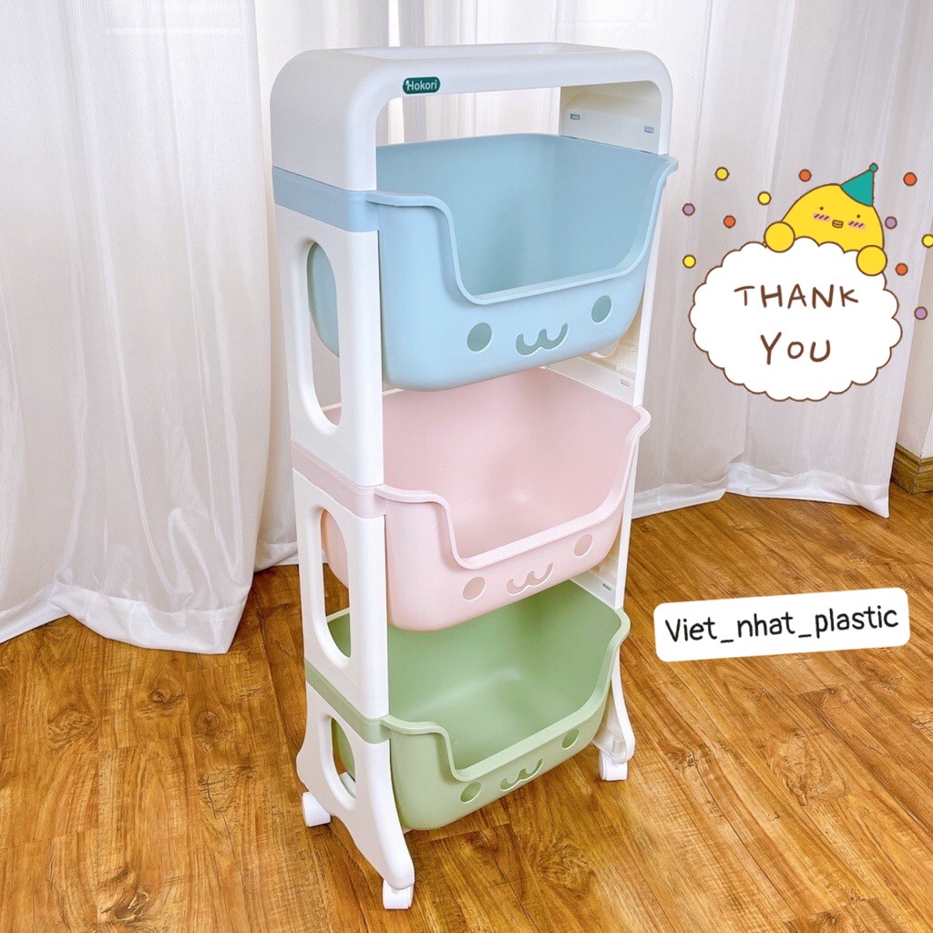 Kệ đồ chơi cho bé, kệ đa năng 3 tầng có bánh xe nhựa Việt Nhật