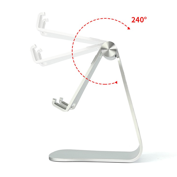 Kệ đỡ điện thoại trên bàn, chất liệu kệ đỡ điện thoại hoàn toàn hợp kim nhôm cắt CNC. Kệ giữ điện thoại cấu tạo chính với hai phần. Phần đế bản lớn được uốn từ miếng nhôm có khoét lỗ để luồn dây sạc. Phần Đầu giữ máy có thể điều chỉnh lên xuống, thay đổi góc nhìn rất tiện dụng.