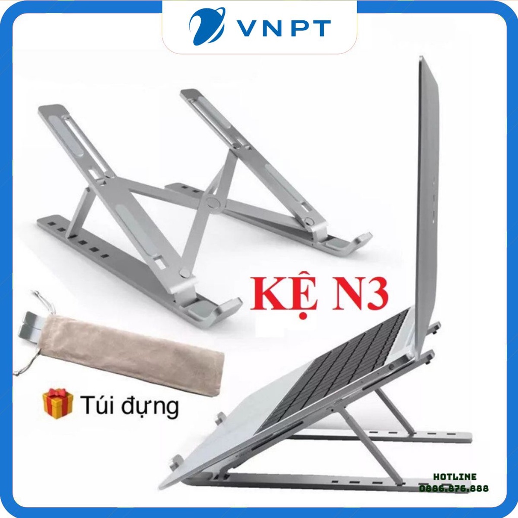 Kệ đỡ LAPTOP, MACBOOK, IPAD mã N3 bằng Nhôm có thể gấp gọn, điều chỉnh độ cao, hỗ trợ tản nhiệt máy tính.