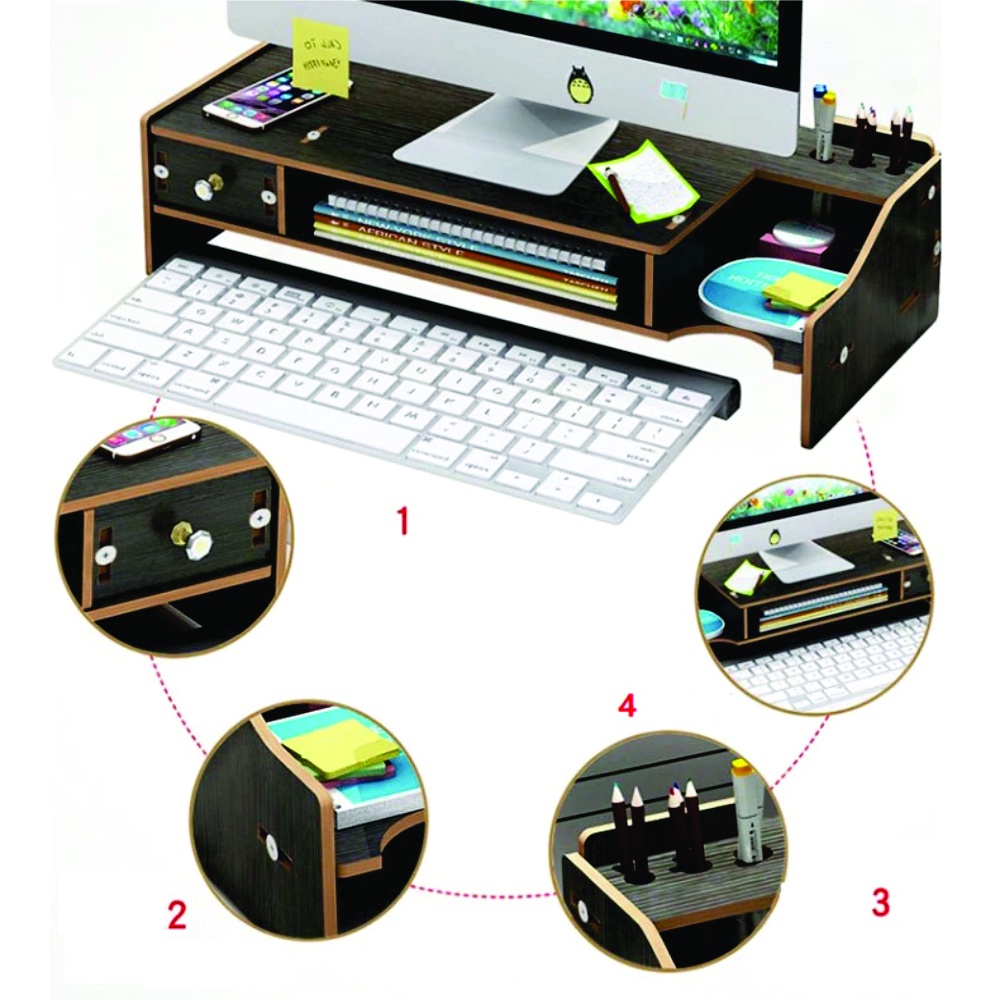 Kệ đỡ màn hình, Kệ máy tính kệ sách kệ hồ sơ để bàn kèm cắm viết bằng gỗ KMT6